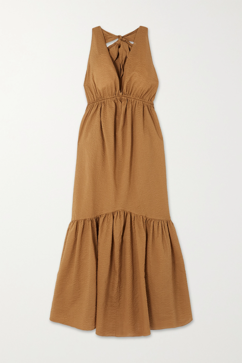 ReformationЯкщо вибирати довгу сукню, то з V-подібним вирізом, щоб візуально подовжити тулуб.