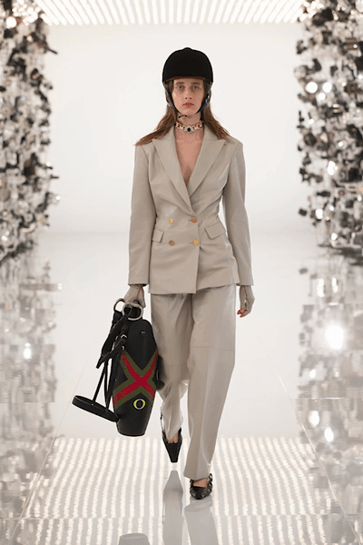 Brunello CucinelliЩе один практичний варіант для роботи — вільний костюм, як молочний сет від Gucci або оверсайз-комплект від Brunello Cucinelli.