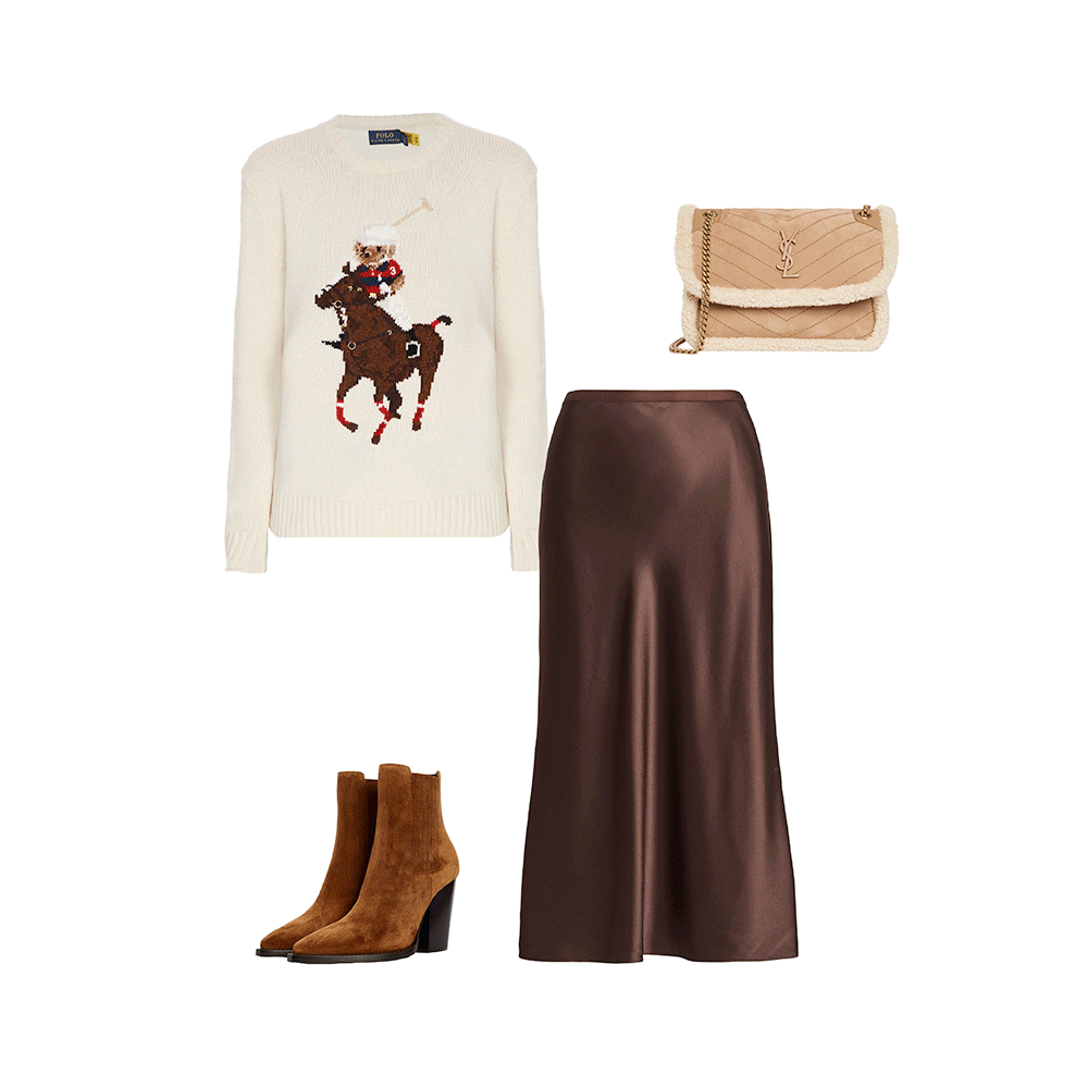 Спідниця Polo Ralph & Lauren, светр Polo Ralph & Lauren, лодочки Dolce & Gabbana, сумка Saint Laurent, джемпер Polo Ralph & Lauren, сумка Saint Laurent, джемпер Polo Ralph & Lauren, клатч Saint LaurentНа саму згадку про фільм "Красуня" в пам’яті миттєво зринає образ Джулії Робертс у червоній сукні з відкритими плечима. А що, коли подивитися ширше, і вибрати щось провокаційніше й несподіваніше?