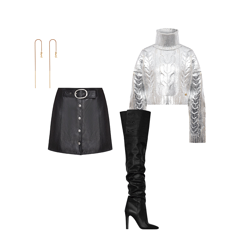 Шорти Balmain, спідниця Saint Laurent, боді Saint Laurent, сережки Saint Laurent, боді Saint LaurentЯкщо новорічну ніч хочеться провести з подругами, чому б не вибрати щось грайливе або кокетливе в стилі фільму "Нетямущі", який вплинув на всі покоління школярок 1990-х. Героїня Алісії Сільверстоун залюбки носила як картаті костюми з мініспідницями, так і мінімалістичніші сукні яскравих відтінків, обов’язково оголюючи ноги.