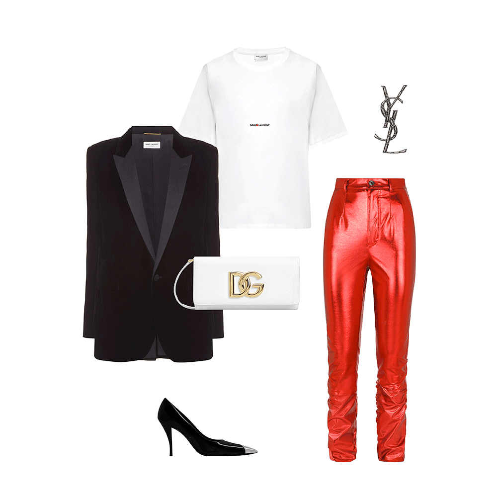 Штани Dolce & Gabbana, джинси Dolce & Gabbana, штани Dolce & Gabbana, футболка Saint Laurent, жакет Saint Laurent, сумка Dolce & GabbanaВсі представлені в статті речі можна придбати в онлайн-магазиніkameron.ua або в мережі крамниць компанії Kameron.