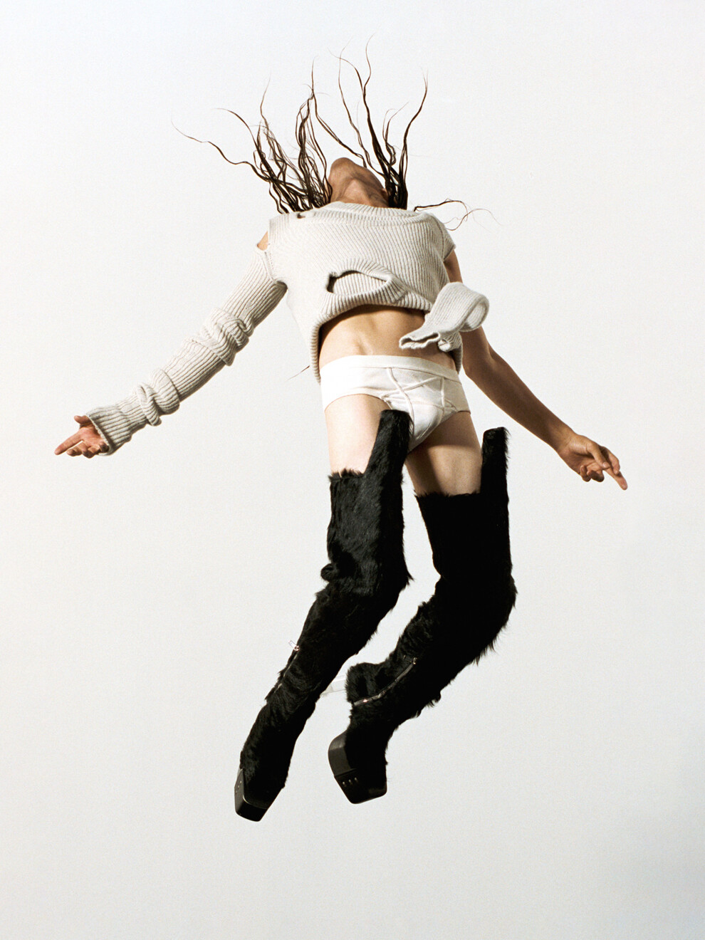 Бавовняна туніка, хутряні чоботи, бавовняні труси, все — RICK OWENSУ самому Оуенсі є цікавий парадокс. З усією любов'ю до мармуру та філософії, захопленням Вагнером (він часто використовує музику композитора на своїх шоу), темним одягом і пристрастю до макабричних сюжетів — він мав виявитися жорстким і суворим чоловіком без тіні іронії. Але Оуенс притягує до себе, він неймовірно привабливий і дуже смішний. У ньому є відчуття комізму й почуття доречності жарту, якими можуть похвалитися майстри стендапу. Він легко впускає співрозмовника у свій світ. І попри чорний напіввитертий одяг, який створює, Оуенс — затятий оптиміст. Запитайте Ріка про пандемію — жодного заламування рук: "Для мене це був період найінтенсивнішого, найефективнішого і найприємнішого навчання. З'явилася нагода взятися за книги, які я постійно відкладав на потім. У цьому було щось дуже солодке — з присмаком небезпеки, зрозуміло, адже ніхто не знав, що чекає на нас далі". На обличчі дизайнера знову з'являється зловісна усмішка. "Ми стали по-новому цінувати звичні для нас речі — і взаємини, скоротивши коло спілкування до необхідного мінімуму й приділяючи більше часу тим, хто справді для нас важливий". В умовах карантину Оуенс багато міркував про те, як правильно презентувати свої колекції: "Спочатку ми зняли камерне відео в студії — це здавалося єдиним правильним рішенням. Але потім я зрозумів, що треба боротися і зробити щось таке, що стане вершиною нашої естетики". У звичній манері Оуенс вважав за свій обов'язок грати по-крупному.