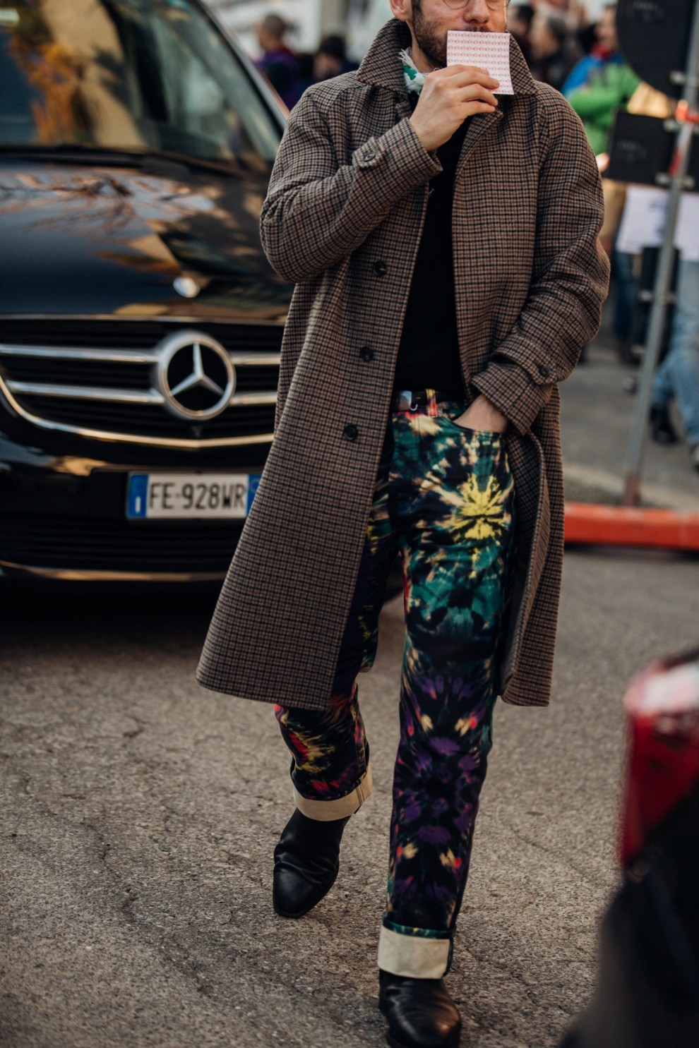 Порада 2: прямі чорні штани з яскравим візерунком у комбінації з класичним картатим пальтом — так, тепер ми поєднуємо суперечливі моделі, тому що можемо собі дозволити.